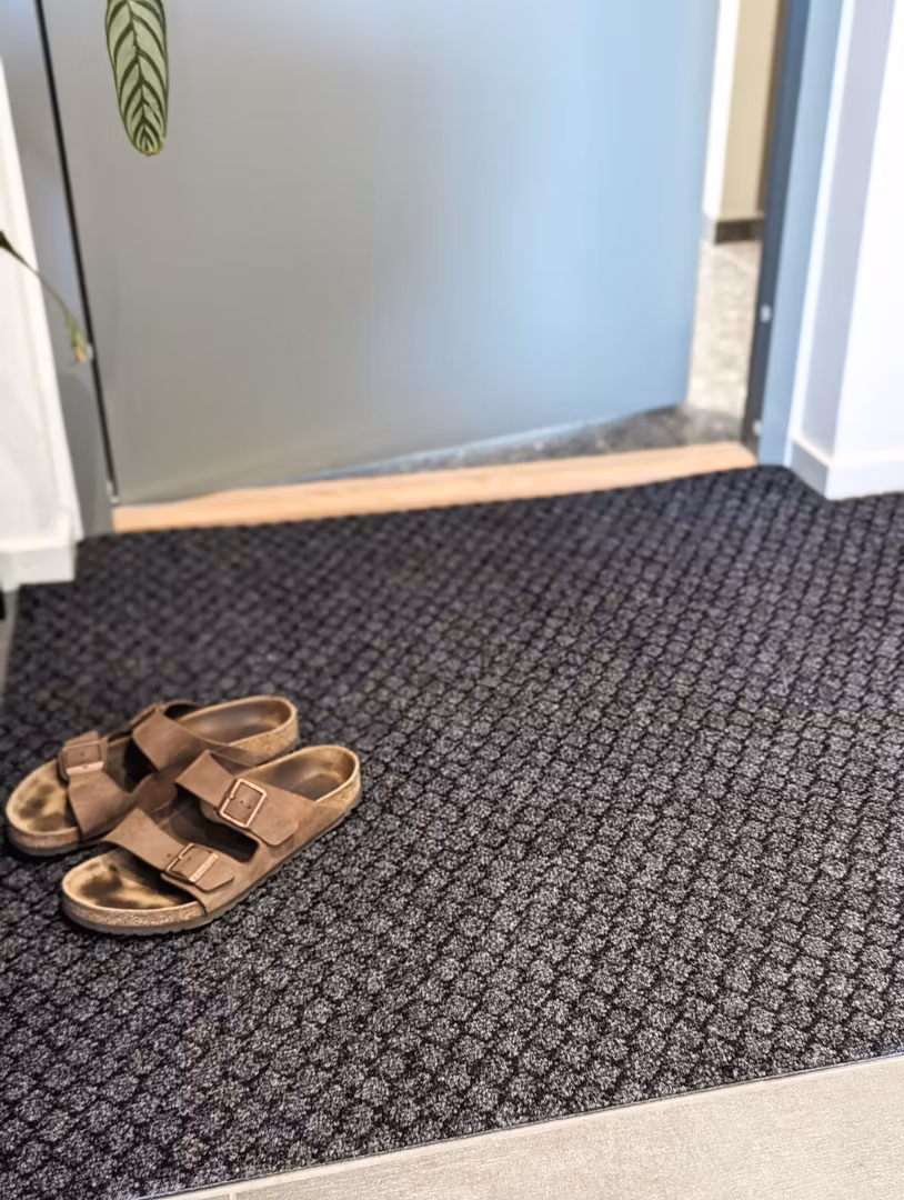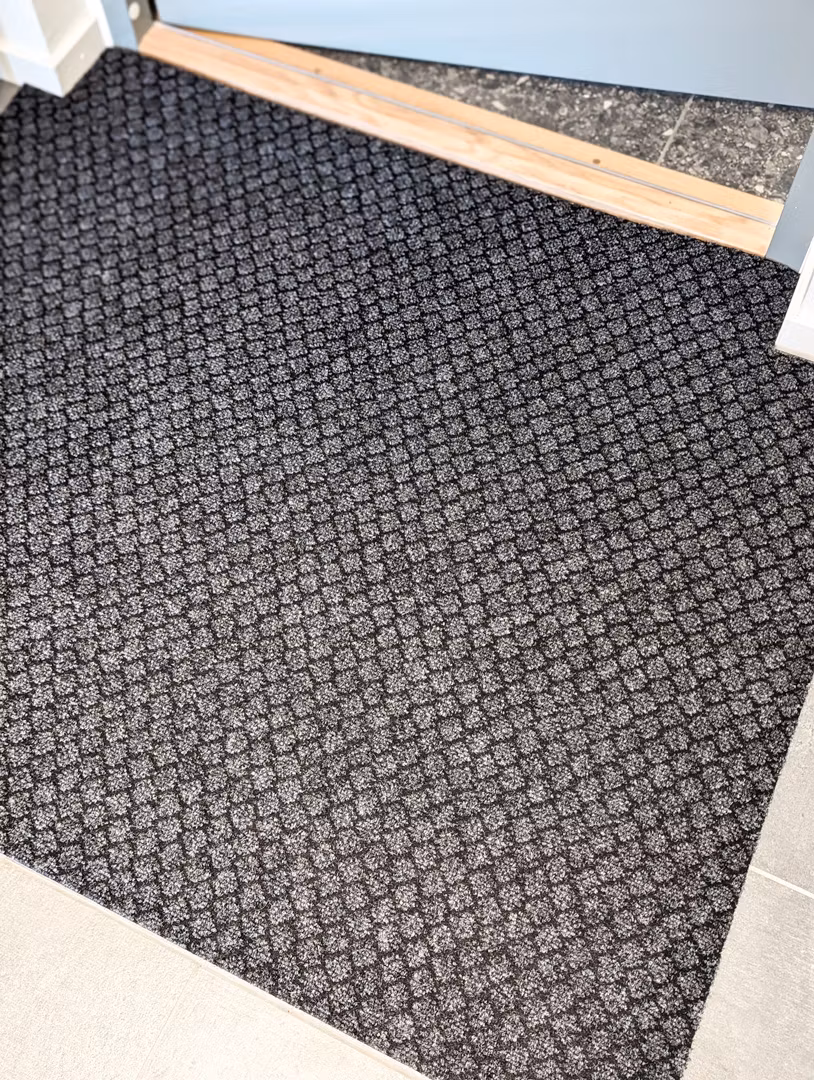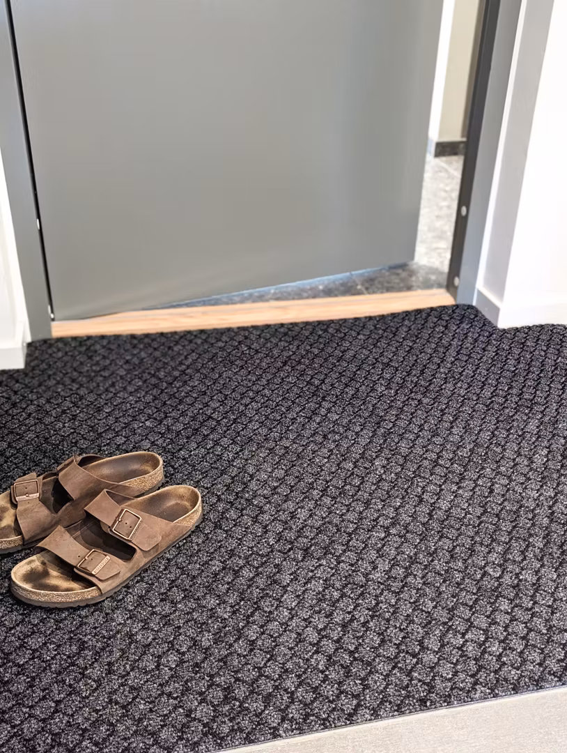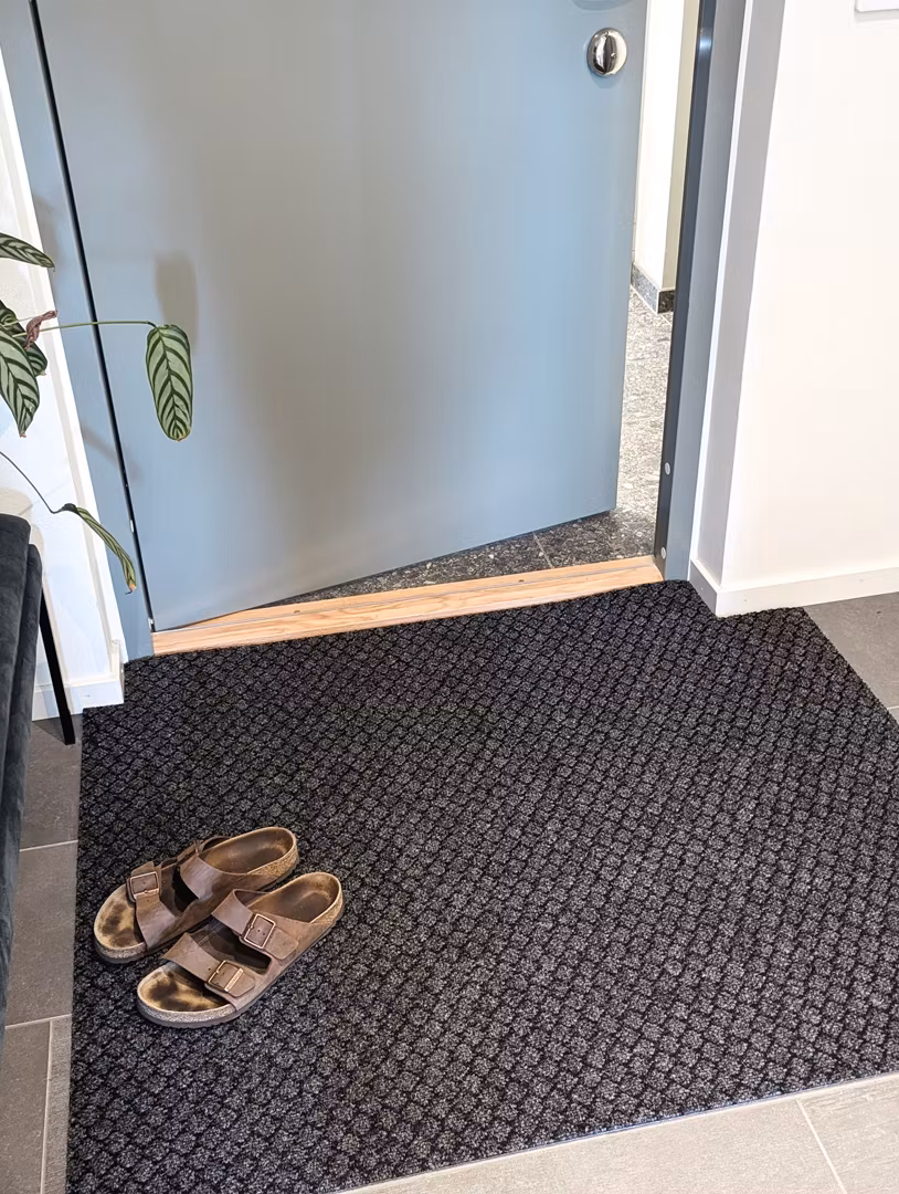 Comb är en slitstark dörrmatta på metervara med ett stilrent rutmönster som skyddar golvet från smuts och väta. Mattan har en gummerad undersida som håller den på plats och förhindrar att hörnen reser sig. Den finns i 100 och 200 cm bredder och kan enkelt anpassas i längd och form med en sax eller mattkniv. Perfekt för hallen och entrén, där både funktion och design är viktiga. Den är lätt att rengöra och slitstark, vilket gör den till ett långvarigt val.