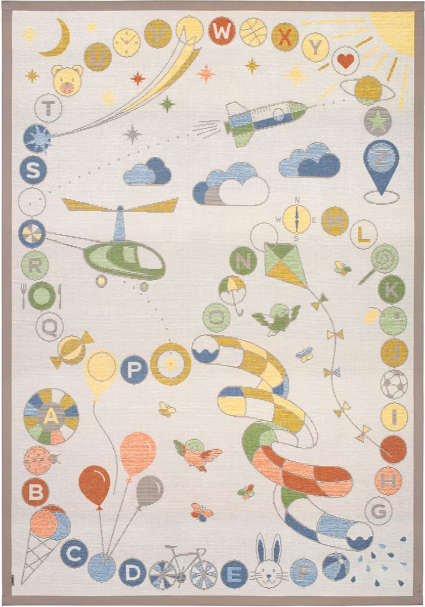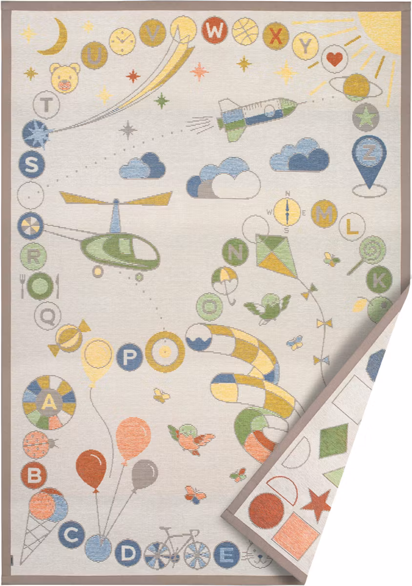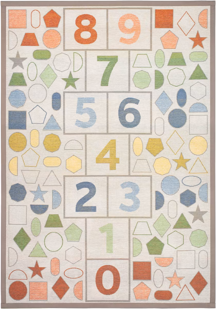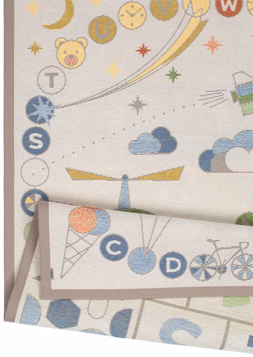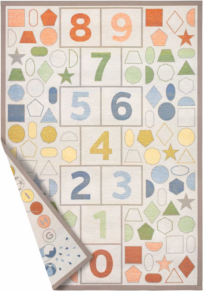 Tähemaa Barnmatta är en perfekt lekplats för ditt barn och en fin inredningsdetalj i barnrummet. Den vändbara mattan har två lekfulla mönster - en hopphage med siffror på ena sidan och alfabetet på andra sidan. Med en slitstark bandkant och en slät, lättstädad yta är denna matta både rolig och praktisk.Matta är en del av vår smartWeave-kollektion, vilket innebär att den är tvåsidig och har olika mönster på varje sida. Tillverkad i bomulls-chenille och polyester, är Tähemaa en högkvalitativ och hållbar matta som är enkel att rengöra. Dammsug regelbundet och ta bort eventuella fläckar med en mjuk trasa och vatten.